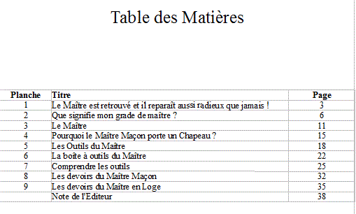 | Le Maître est retrouvé, mais quelle est la signification de ce Grade ? Quels sont les outils qui permettent au maître de travailler ? Le Maître à des devoirs, mais quels sont'ils ? |