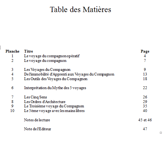 Il est disponible 3 versions : Audio, Téléchargeable et Imprimé sur 45 pages. Les planches contenues dans ce Recueil, sont une compilation de planches qui sont ou qui ont été publiées dans www.ledifice.net Elles ont été sélectionnées pour leur haut « Taux de Visites » : Voir ce terme dans le site de l'Edifice. Elles sont telles que les auteurs les ont fait parvenir à L'Edifice. Il se peut donc que : la syntaxe et le Français utilisé ne soient pas ceux de l'Académie Française : Chacun sait en Maçonnerie que « l'on écrit avec ses tripes » L'Edifice