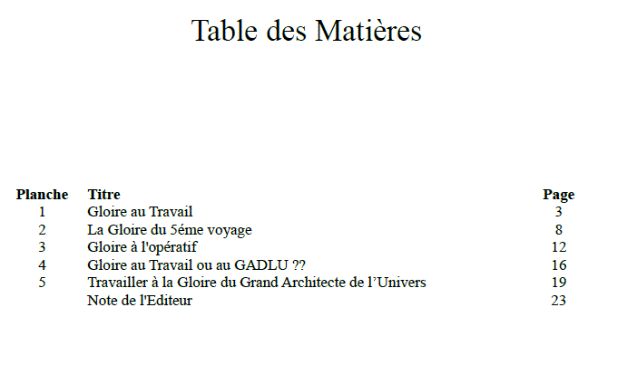 Téléchargeable et Imprimé. Les planches contenues dans ce Recueil, sont une compilation de planches qui sont ou qui ont été publiées dans www.ledifice.net Elles ont été sélectionnées pour leur haut « Taux de Visites » : Voir ce terme dans le site. Elles sont telles que les auteurs les ont fait parvenir à L'Edifice. Il se peut donc que : la syntaxe et le Français utilisé ne soient pas ceux de l'Académie Française : Chacun sait en Maçonnerie que « l'on écrit avec ses tripes » L'Edifice